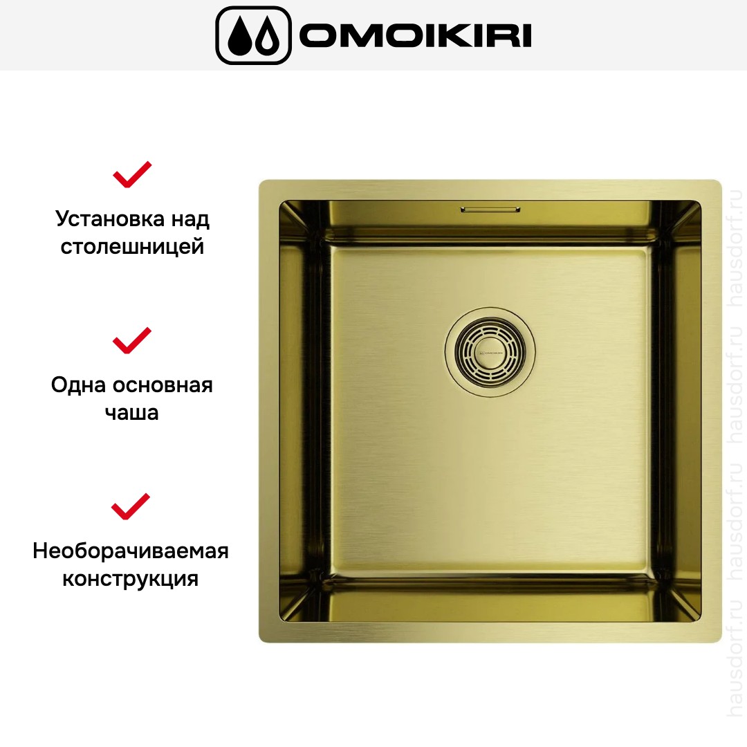 Обратите внимание на дизайнерские отличия мойки Омойкири, которые помогут в создании идеальной кухни в вашем доме. Она выполнена в цвете светлое золото. Основной материал — нержавеющая сталь, он гарантирует надежность и долгие годы службы без повреждений.