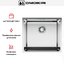 Для установки предусмотрены крепления и уплотнительная лента. В документации указаны ширина монтажного отверстия и глубина выреза, что ускоряет подготовку столешницы и уменьшает риск ошибок. Монтаж возможен как над столешницей, так и под неё — это даёт гибкость при планировке. В комплекте есть корзинчатый вентиль и сифон, что упрощает подключение и делает систему слива готовой к использованию. Шумоподавляющие элементы конструкции снижают уровень звуков при наборе воды и при мытье, что особенно ценно в открытых кухнях.