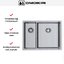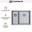 Монтаж возможен как над столешницей, так и под неё, что даёт свободу выбора оформления. Для установки рассчитана база 60 см; монтажное отверстие может быть 56×42 см или 56.4×42.4 см, поэтому важно заранее сверить размеры столешницы. Изделие не оборачиваемое, то есть ориентация фиксирована — стоит определиться с расположением основной и дополнительной чаш при планировании кухни. Радиус скругления 1 см обеспечивает оптимальный баланс между компактностью и удобством очистки углов.