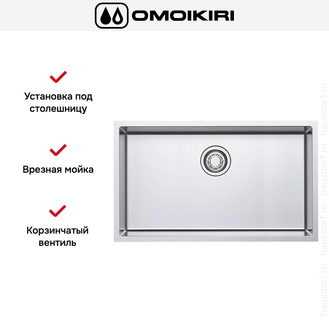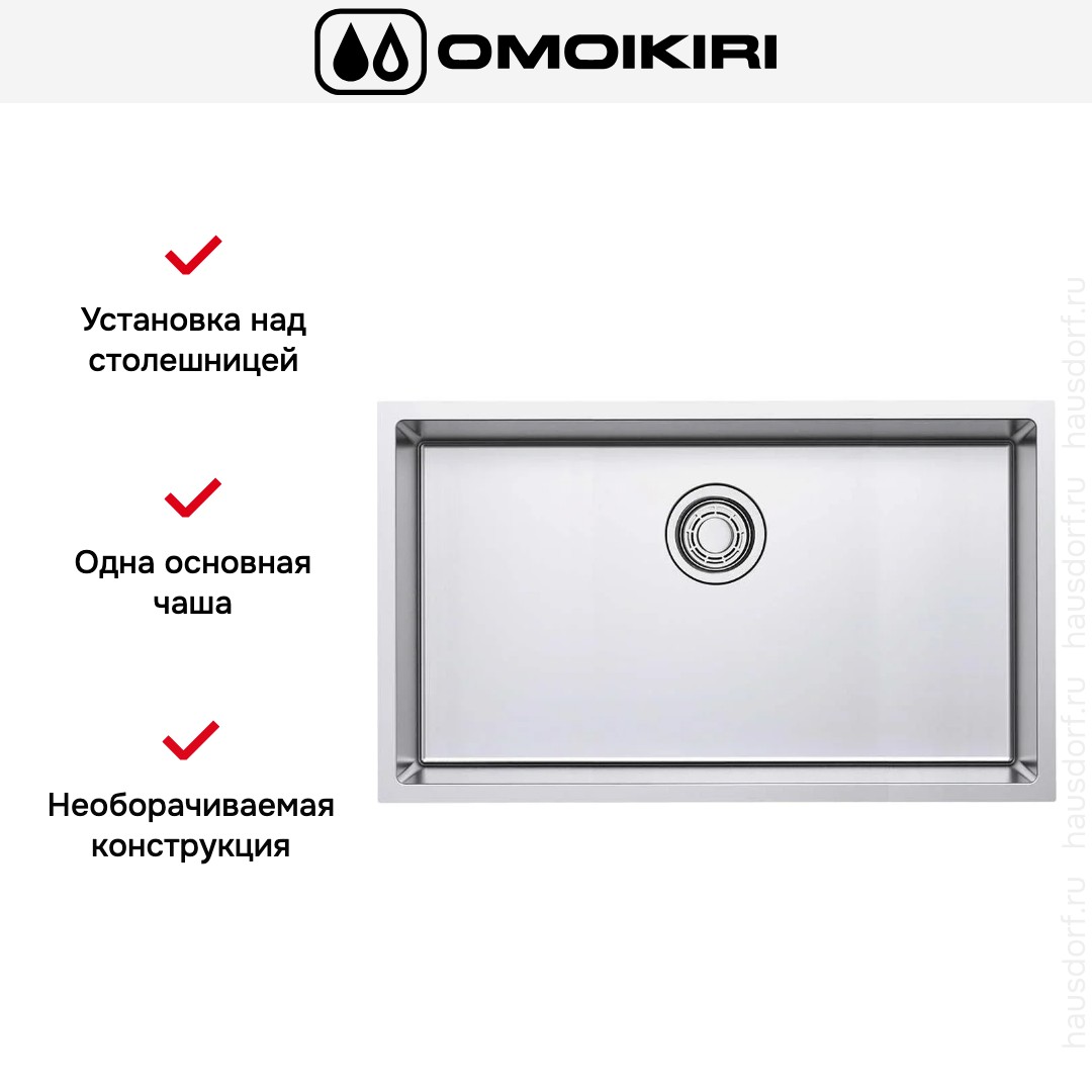 Обратите внимание на дизайнерские отличия мойки Омойкири, которые помогут в создании идеальной кухни в вашем доме. Она выполнена в цвете нержавеющая сталь. Основной материал — нержавеющая сталь, он гарантирует надежность и долгие годы службы без повреждений.