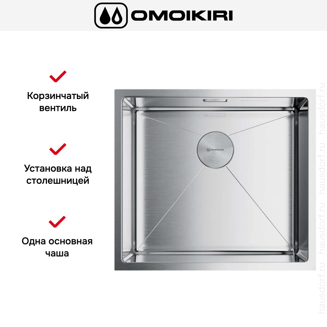 Врезная мойка Omoikiri — отличный выбор для тех, кто хочет создать гармоничное кухонное пространство с полностью вписывающейся в него сантехникой. Преимущество такой конструкции — плотное прилегание к столешнице, так как вырез подбирается индивидуально под габариты модели. Под стыки не попадает вода, поэтому срок службы значительно увеличивается, пользоваться ей удобно и приятно. Данная модель имеет стандартную форму, поэтому подходит большинству пользователей. Устанавливается вровень со столешницей, благодаря чему не остается стыков, в которых копились бы загрязнения. Устанавливается под столешницу, благодаря чему не остается стыков, в которых копились бы загрязнения, а также увеличивается рабочая глубина. Устанавливается над столешницей: это самый простой способ монтажа, зачастую с ним можно справиться даже без специалистов, главное — правильно рассчитать размеры ниши.