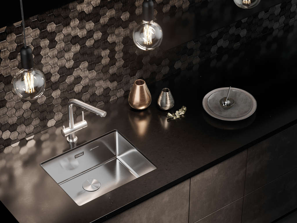 вровень со столешницей — создается ощущение бесшовного пространства, а если мойка сделана из того же материала, то и единого дизайна;