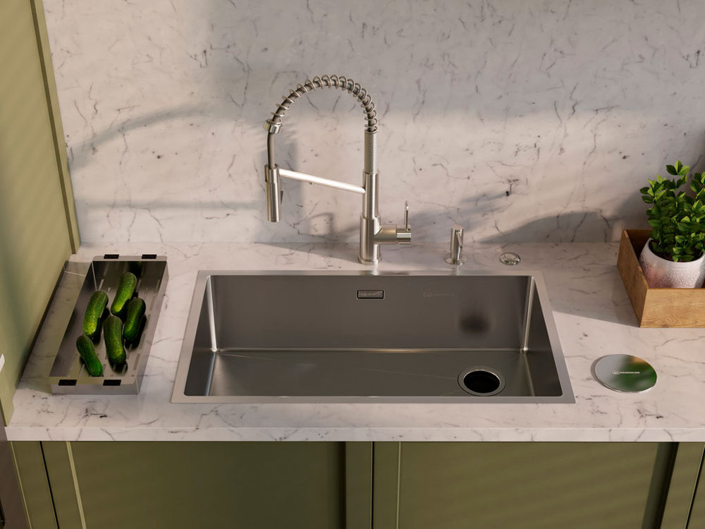 Мойка с одной чашей — классический вариант, который привычен пользователям. Вариации этой конструкции — мойка с одной основной и одной дополнительной чашей, с аксессуарами (например, коландером), с крылом. Стандартная глубина таких моделей — 15-20 см, чтобы внутри поместилась посуда или продукты, а брызги не попадали вне.