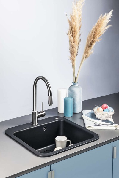 Форма мойки — самый очевидный критерий выбора модели. Благодаря разнообразию материалов изготовления производители выпускают изделия самых разных форм. Наиболее распространенными остаются прямоугольные мойки и квадратные как их разновидность. У них много достоинств — удобство встраивания и минимум проблем при монтаже, большой объем, а для прямоугольных — возможность установки в столешницу небольшой глубины. Углы у большинства моделей делают скругленными, что облегчает очистку и не дает забиваться мусору. Такие мойки можно найти во всех ценовых категориях, для их изготовления используют любые материалы.