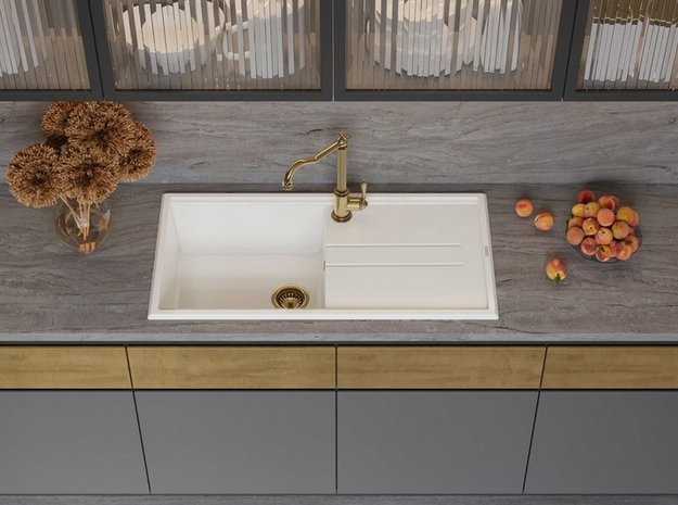 Стандартное значение глубины для моделей с одной чашей составляет 16-19 см. Если в семье часто готовят выпечку и пользуются противнями, лучше выбрать модель с большей глубиной — 19-20 см. Неглубокие раковины от 12 см на кухнях устанавливаются реже, обычно они используются в ванной, для мытья рук, но не посуды. Чаши глубиной более 20 см — не редкость у больших моек. Глубиной около 20 см могут отличаться и компактные мойки — таким образом компенсируются их малая ширина или диаметр. Следует заметить, что во время мытья посуды или продуктов к такой мойке придется наклоняться.