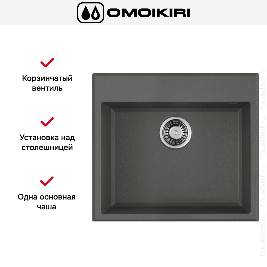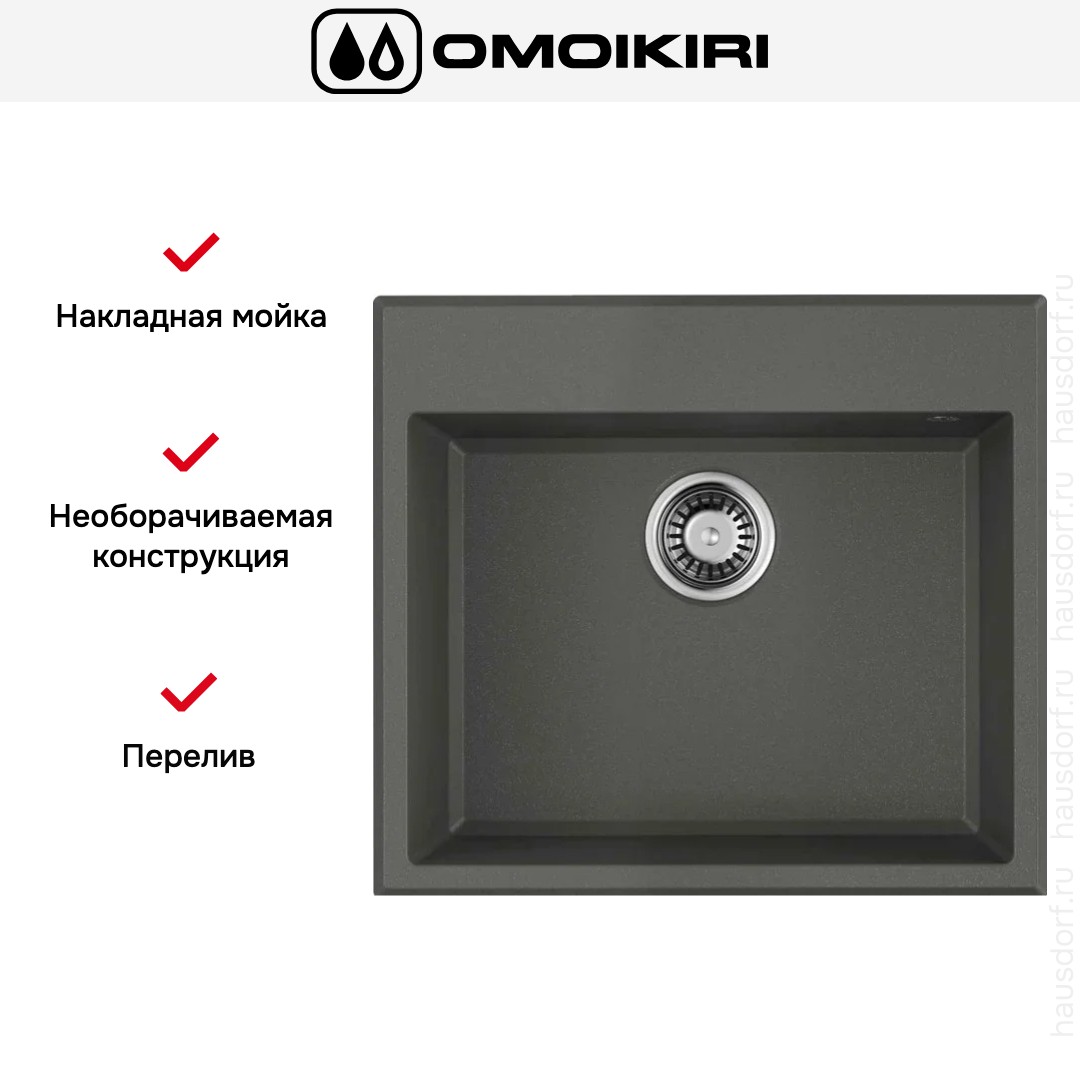Накладная мойка Omoikiri — отличный выбор для тех, кто хочет создать гармоничное пространство с удобной сантехникой. простой в установке. Преимущество такой конструкции: легко подобрать практически к любой кухне и не придется демонтировать вместе с тумбой при ремонте или перестановке остальной мебели. Данная модель имеет стандартную форму, поэтому подходит большинству пользователей. Устанавливается над столешницей: это самый простой способ монтажа, зачастую с ним можно справиться даже без специалистов, главное — правильно рассчитать размеры ниши.