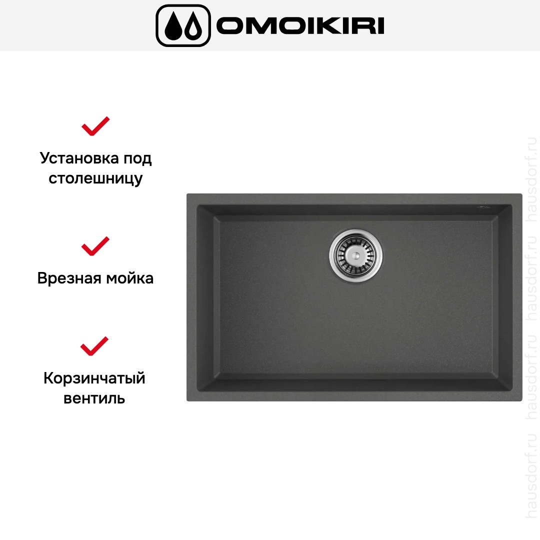 Врезная мойка Omoikiri — отличный выбор для тех, кто хочет создать гармоничное кухонное пространство с полностью вписывающейся в него сантехникой. Преимущество такой конструкции — плотное прилегание к столешнице, так как вырез подбирается индивидуально под габариты модели. Под стыки не попадает вода, поэтому срок службы значительно увеличивается, пользоваться ей удобно и приятно. Данная модель имеет стандартную форму, поэтому подходит большинству пользователей. Устанавливается под столешницу, благодаря чему не остается стыков, в которых копились бы загрязнения, а также увеличивается рабочая глубина.