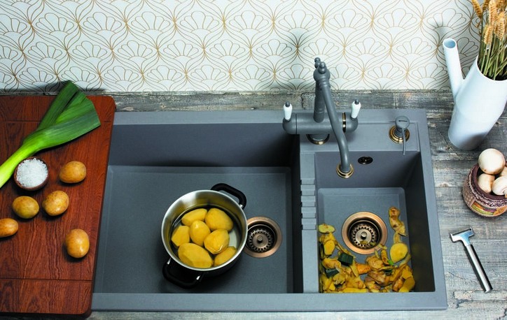 Выбор мойки по количеству основных чаш зависит не только от пожеланий пользователя, но и от габаритов кухни, размеров столешницы, бытовых и пищевых привычек тех, кто проживает в доме. Под основной чашей в мойках понимается обычно чаша большего размера, которая предназначается для свободного размещения и мытья грязной посуды, а также первичной разделки продуктов перед готовкой. Меньшую, дополнительную чашу, как правило, используют для ополаскивания чистой посуды, овощей или фруктов, подсушивания вымытых продуктов, размораживания.