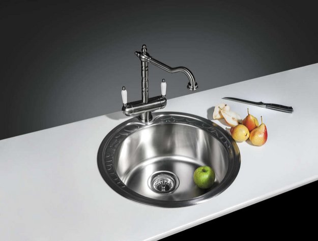 Круглые и овальные мойки смотрятся эффектно и стильно, у них отсутствуют углы, так что уход не составляет труда. При одинаковом объеме круглая мойка будет казаться меньше, чем квадратная. Такие модели часто используют в классическом интерьере. Установка такой мойки требует круглого отверстия в столешнице, что также достаточно просто сделать. Угловые мойки позволяют заполнить пространство в углах, экономя место в помещении. Раковины в них могут быть различной формы, а место за мойкой можно использовать для хранения. Мойки в форме трапеции выглядят свежо и оригинально, но подойдут не для всякого интерьера.