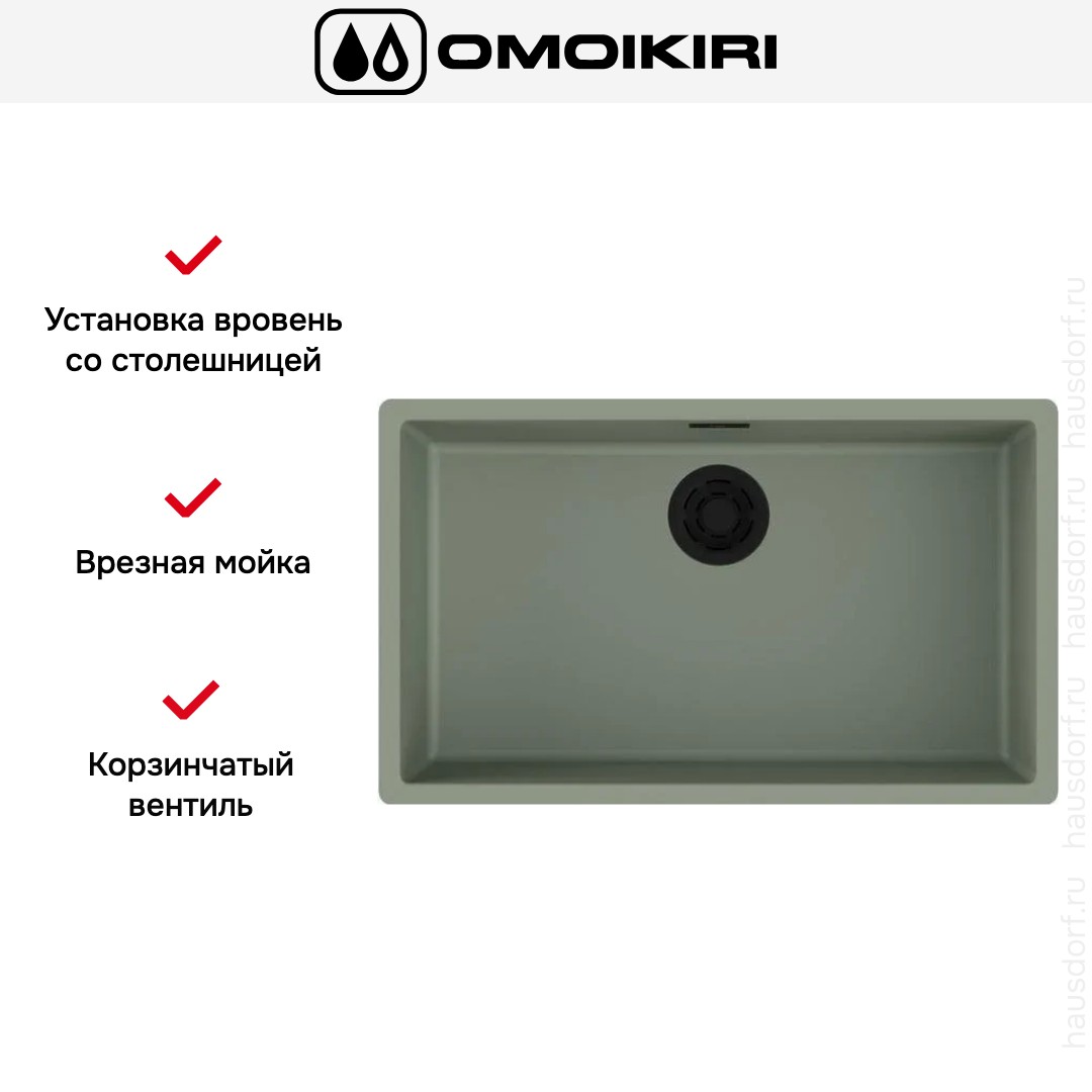 Обратите внимание на дизайнерские отличия мойки Омойкири, которые помогут в создании идеальной кухни в вашем доме. Она выполнена в цвете серо-зеленый.