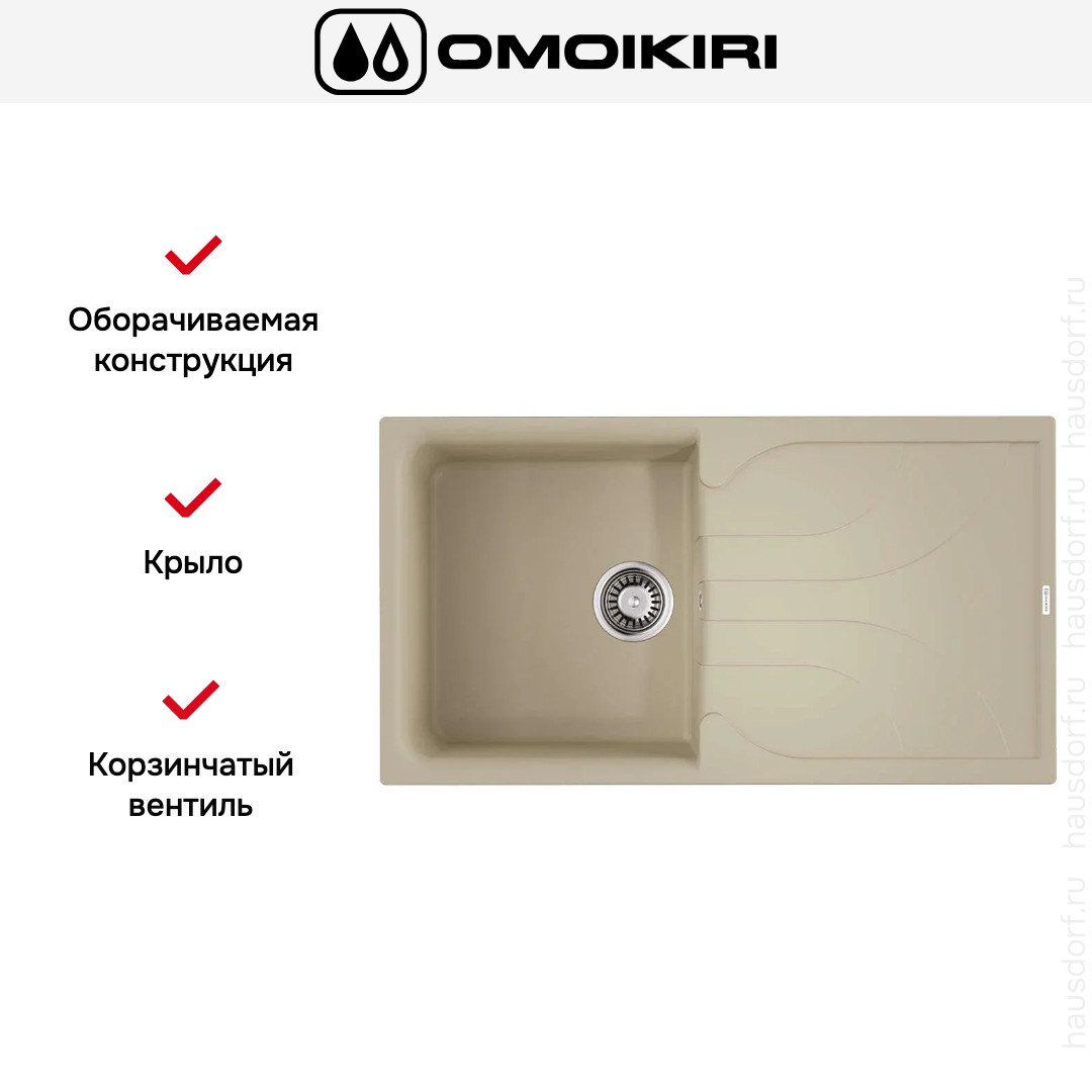 Обратите внимание на дизайнерские отличия мойки Омойкири, которые помогут в создании идеальной кухни в вашем доме. Она выполнена в цвете ваниль. Крыло, расположенное является дополнительным рабочим пространством, на котором можно сушить посуду, разделывать мясо и нарезать овощи.