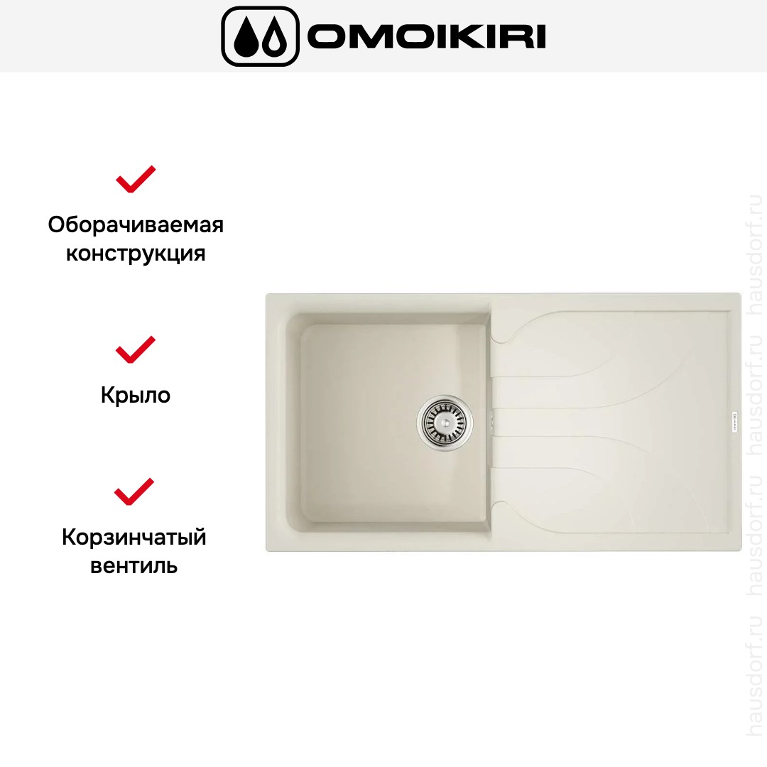 Обратите внимание на дизайнерские отличия мойки Омойкири, которые помогут в создании идеальной кухни в вашем доме. Она выполнена в цвете белый. Крыло, расположенное является дополнительным рабочим пространством, на котором можно сушить посуду, разделывать мясо и нарезать овощи.