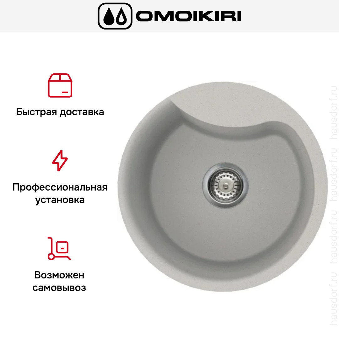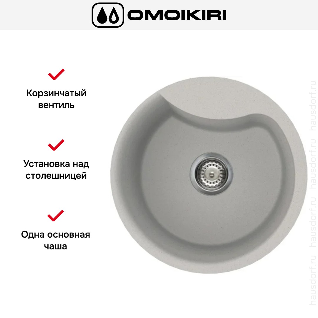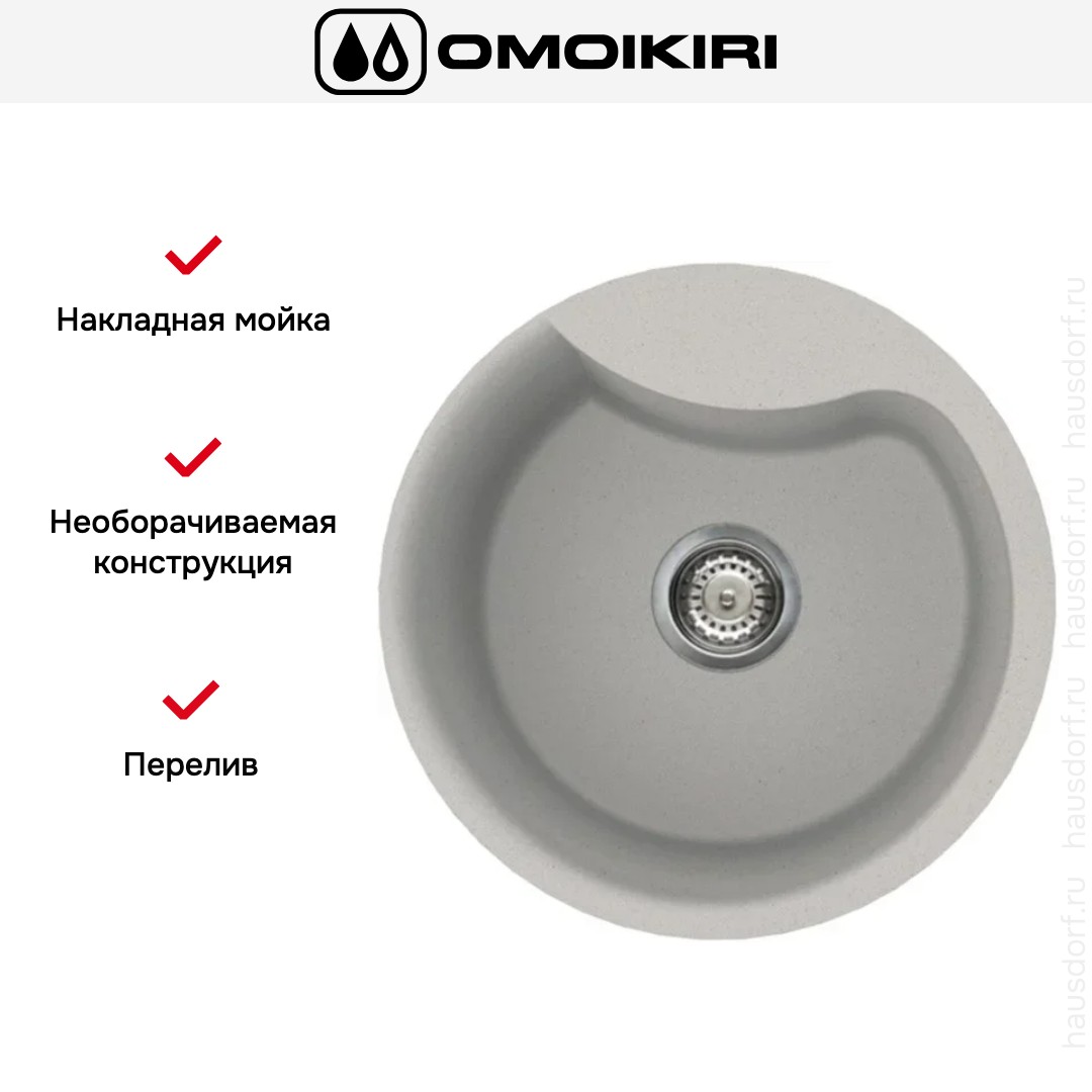 Накладная мойка Omoikiri — отличный выбор для тех, кто хочет создать гармоничное пространство с удобной сантехникой. простой в установке. Преимущество такой конструкции: легко подобрать практически к любой кухне и не придется демонтировать вместе с тумбой при ремонте или перестановке остальной мебели. Данная модель имеет скругленный контур, поэтому выбор тумбочки для нее потребует дополнительного внимания. Устанавливается над столешницей: это самый простой способ монтажа, зачастую с ним можно справиться даже без специалистов, главное — правильно рассчитать размеры ниши.