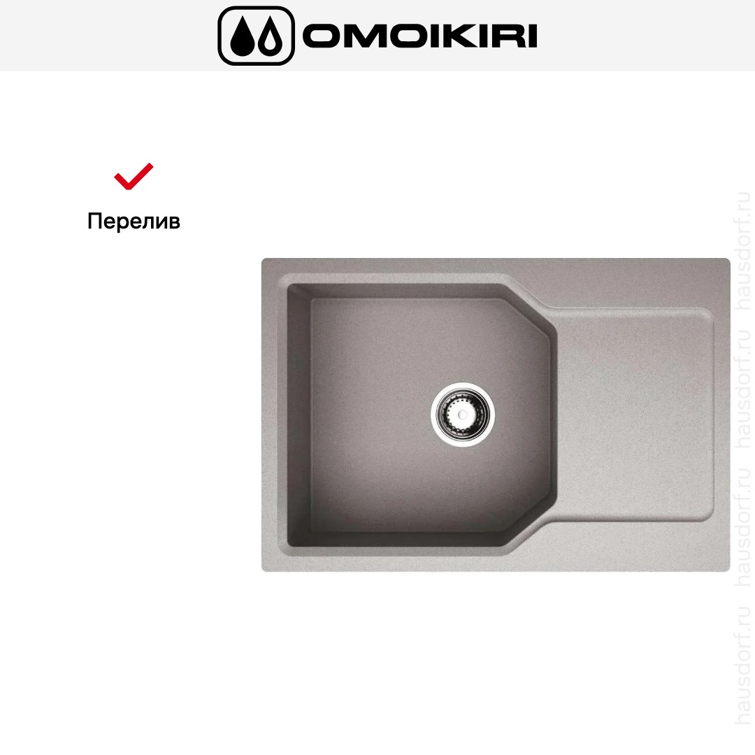 Мойка OMOIKIRI Yonaka 78 LB GR — стильная накладная модель прямоугольной формы, рассчитанная на установку над столешницей. Её габариты 7851 см делают изделие компактным, но вместительным, а цвет «Серый Ленинград» придаёт кухне сдержанную элегантность. Поверхность изготовлена из материала ArtGranit толщиной 10 мм, что обеспечивает приятную текстуру и визуальную глубину оттенка. Вес 9,03 кг облегчает транспортировку и монтаж, а литьевой метод производства гарантирует равномерность структуры.