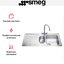 Прямоугольная кухонная мойка из матовой нержавеющей стали. Врезная установка позволяет произвести монтаж мойки с бортиком или непосредственную установку вровень со столешницей. Мойка Smeg AP102S имеет дополнительную чашу, в которую удобно складывать столовые приборы, чтобы они не были разбросаны по всей раковине.