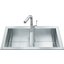 Установка накладной мойки над столешницей — наиболее простой и экономичный способ, не требующий выреза специального отверстия. В процессе установки мойка может накладываться на столешницу сверху или даже полностью ее заменять. Подобные мойки имеют обычно прямоугольную или квадратную форму.