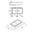 Прямоугольная модель общей шириной 86 см устанавливается в базу шириной 90 см вровень со столешницей. Чаши шириной 37 см каждая отличает значительная глубина 21 см. Для удобной очистки углы сделаны закругленными. Сифон в комплекте обеспечивает простое присоединение мойки к системе канализации.