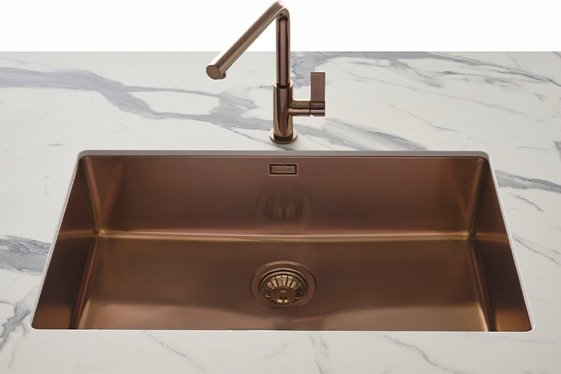 Медная мойка Smeg Mira VSTR71CUX — элегантная и выразительная врезная модель, созданная для тех, кто стремится подчеркнуть индивидуальность интерьера без ущерба для функциональности. Прямоугольная форма и габариты 75×44 см обеспечивают достаточно места для повседневных кухонных задач — от мытья посуды до обработки продуктов. Глубина чаши 44 см эффективно предотвращает разбрызгивание воды, сохраняя чистоту и порядок на рабочей поверхности.