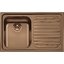 Мойка Smeg SP791DRA прямоугольной формы шириной 79 см с одной чашей и крылом может быть установлена на кухне в классическом или деревенском стиле. Она изготовлена из полированной нержавеющей стали, поверх которой нанесено PVD-покрытие цвета меди. Вместительная чаша шириной 34 см и глубиной 21 см позволит вымыть объемную посуду и продукты. Мойка Смег SP791DRA необорачиваемая и может монтироваться только в одном положении, крыло с желобками для стекания воды находится справа.