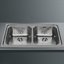Мойка Smeg SP792N — врезная прямоугольная модель со скругленными углами шириной 80 см, предназначенная для просторной кухни. Изготовлена из полированной нержавеющей стали толщиной 0,7 мм с серебристым напылением. Две одинаковые чаши шириной 34 см и глубиной 21 см каждая позволяют удобно мыть посуду и продукты, а бортик высотой 13 мм предохраняет столешницу от брызг и капель. Для установки мойки Смег SP792N в столешницу служат фиксирующие зажимы и уплотнительная лента.