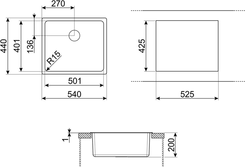 Необорачиваемую мойку можно установить только в одном положении — поэтому при наличии крыла необходимо заранее продумать, как вы хотите ее разместить. Модель имеет одно отверстие для смесителя, может быть разной формы — круглой, квадратной, прямоугольной и нестандартной. Изготавливаются из разных материалов.