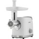 Электрическая мясорубка оснащена мощным мотором 1340 Вт, что обеспечивает производительность 1,3 кг в минуту. Сама насадка-мясорубка выполнена полностью из металла и укомплектована 4 насадками для различных целей: 2 решетки для изготовления фарша, а также специальные насадки для колбас и кеббе.