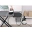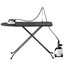 Профессиональный утюг подсоединен к емкости с водой, расположенной в корпусе с подставкой. Вы можете использовать такой утюг как на горизонтальной доске для глажки, так и при обработке вещей на вешалке.