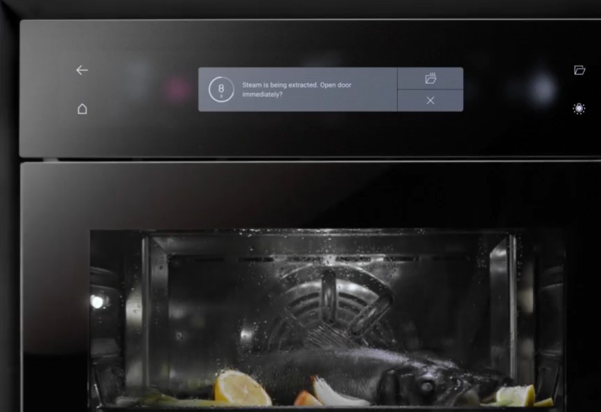 В данной модели работает принцип комбинированного приготовления: это значит, что помимо стандартных режимов с паром вы можете использовать нагрев, характерный для духовых шкафов. Благодаря такой технологии легко получить нежные овощи, сочное мясо, пышную выпечку и настраивать индивидуальные параметры, чтобы добиться идеального результата. Пусть вас не пугает количество программ и настроек — электронная панель управления с возможностью выбора режимов и индикацией процесса понятна пользователям любого возраста. Для удобства производители установили следующие индикаторы: остаточного времени при использовании термощупа, текущего времени.