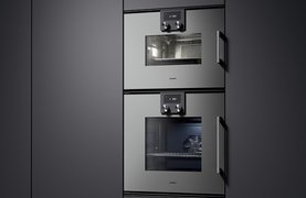 Встраиваемая пароварка в цвете «антрацит» с позолоченной фурнитурой.