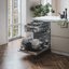 Посудомоечная машина встраивается в нишу под столешницей, мебельный фасад фиксируется и не скользит вдоль двери. В данной модели можно включать и отключать функцию автоматического открывания двери в конце цикла — таким образом вы можете сделать ее максимально удобной для себя. Для сушки используется теплый воздух, который проникает на все уровни и быстро удаляет остатки влаги с посуды.