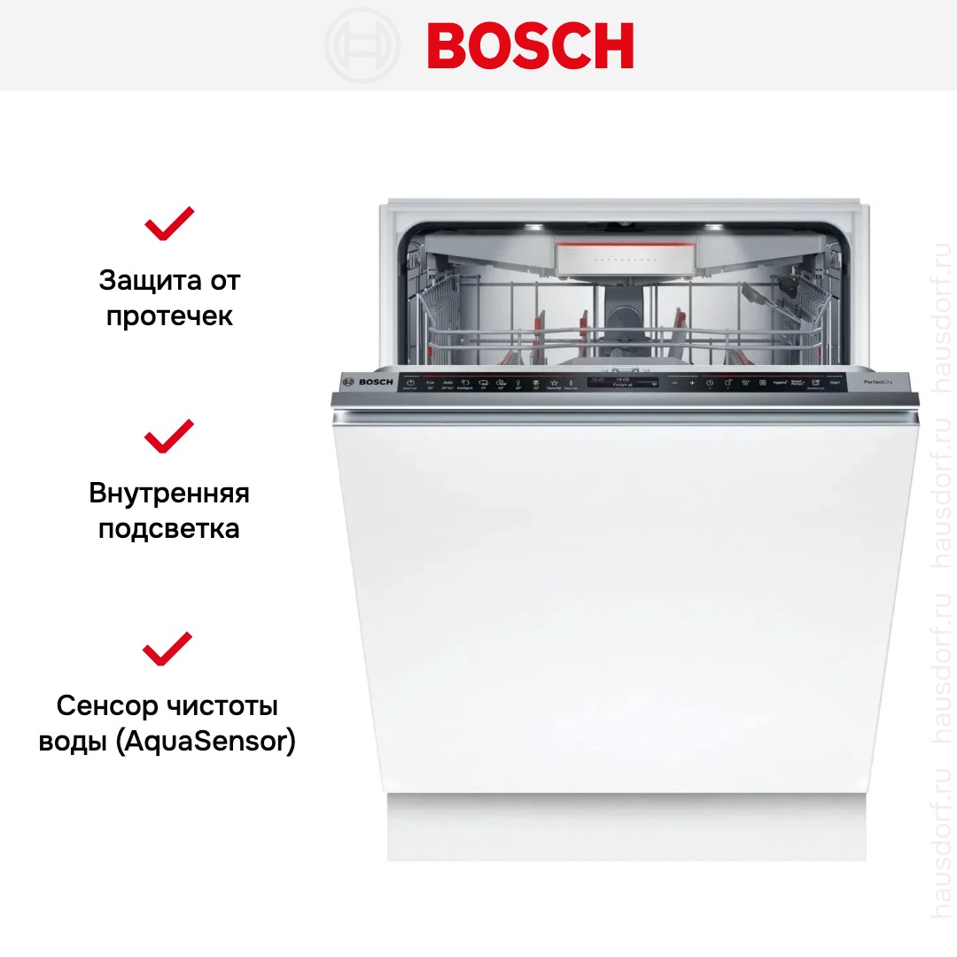 Режим сушки облегчает последующий уход за посудой, предотвращает подтеки на стенках тарелок и бокалов и удаляет значительный процент влаги. Производители внедрили цикл такого типа: цеолитная. Внутренняя подсветка делает работу проще. Внутри расположены разнообразные датчики, сигналы которых выводятся на панель управления, позволяют вам контролировать процесс. В модели установлен сенсор чистоты воды, который отправляет данные об уровне мутности — на их основании длительность программы может меняться.