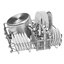 В другом варианте столовые приборы помещаются в съемную корзину, а для ножей предусматривается отдельная полочка. Большое количество ярко окрашенных складных элементов, стоек, держателей и полок позволяет разместить всю посуду компактно и в то же время обеспечить лучшее качество мойки. Система защиты стекла позволяет установить тонкие стаканы, фужеры и бокалы, защищая их от повреждений.