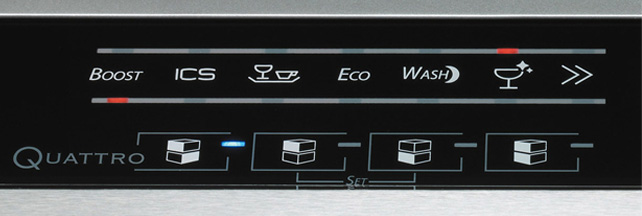 Режим «Quattro» (2 зоны мойки с 2 разными программами одновременно - ICS / Boost, Crystal+/ICS, Crystal+/Boost)
