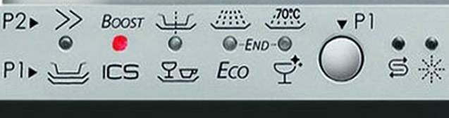 - экономичная с сокращением потребления воды и электроэнергии и увеличением длительности цикла для слабо загрязненной посуды;