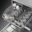 Камера посудомойки из нержавеющей стали — наиболее практичное решение, поскольку на нее оказывают воздействие горячая вода и активные моющие средства. В устройствах премиального уровня — например, в машинах AEG или Miele — для изготовления рабочей камеры используется наиболее качественная нержавеющая сталь толщиной 0,6-0,8 мм марок AISI 304 и 430. Со временем этот материал не портится и не теряет внешнего вида, а также отличается легкостью в очистке. Для того чтобы очистить камеру посудомойки, достаточно протереть ее специальным моющим средством, а затем вытереть насухо. Для большей прочности и надежности из нержавейки изготавливаются также внутренняя сторона откидной дверцы посудомойки и закрытая панель управления на верхней кромке дверцы.