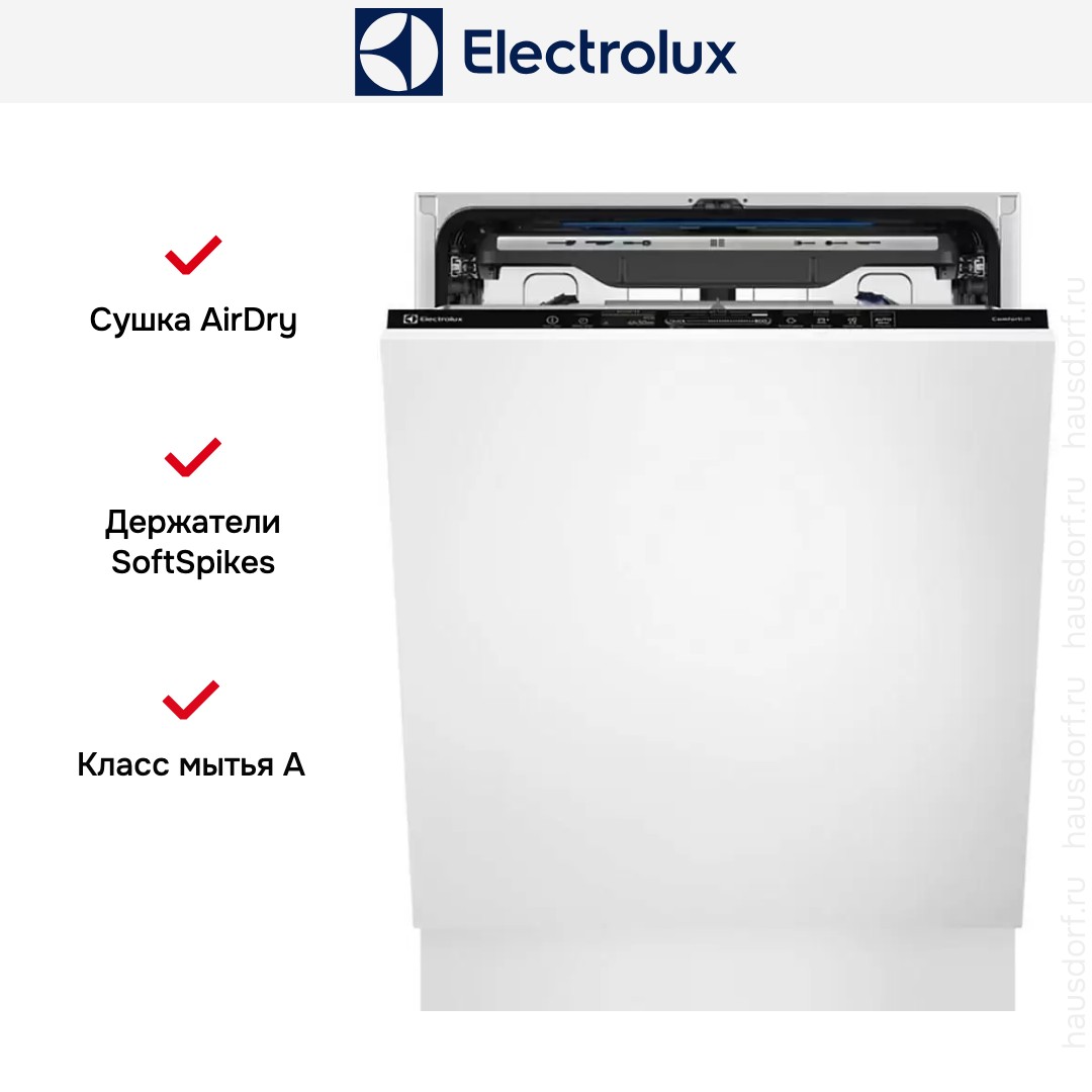 Сушка AirDry в посудомоечных машинах Electrolux позволяет досушить посуду посредством естественного притока воздуха. По завершению рабочего цикла дверца посудомоечной машины автоматически приоткрывается на 10 см, что позволяет избежать появления пятен, разводов и неприятного запаха.