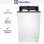 Встраиваемая модель Электролюкс отлично впишется в любой интерьер, главное — правильно выбрать место, чтобы подвести коммуникации. Устанавливается в нишу целиком, полностью закрывается декоративной панелью. Обратите внимание: в комплекте не идет фасад, его необходимо установить самостоятельно. Имеет уменьшенную ширину — благодаря этому поместится даже на очень маленькой кухне. В камеру можно загрузить ограниченное число комплектов: 10 шт. Комплектом считается набор посуды на одного человека, который нужен для полноценного приема пищи: глубокая и плоская тарелки, тарелка для салата, блюдце под чашку, сама чашка, ложка и вилка.