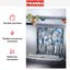 Встраиваемая модель Франке отлично впишется в любой интерьер, главное — правильно выбрать место, чтобы подвести коммуникации. Устанавливается в нишу целиком, полностью закрывается декоративной панелью. Обратите внимание: в комплекте не идет фасад, его необходимо установить самостоятельно. Имеет стандартные размеры, поэтому может не поместиться на очень маленькой кухне. В камеру можно загрузить ограниченное число комплектов: 13 шт. Комплектом считается набор посуды на одного человека, который нужен для полноценного приема пищи: глубокая и плоская тарелки, тарелка для салата, блюдце под чашку, сама чашка, ложка и вилка.