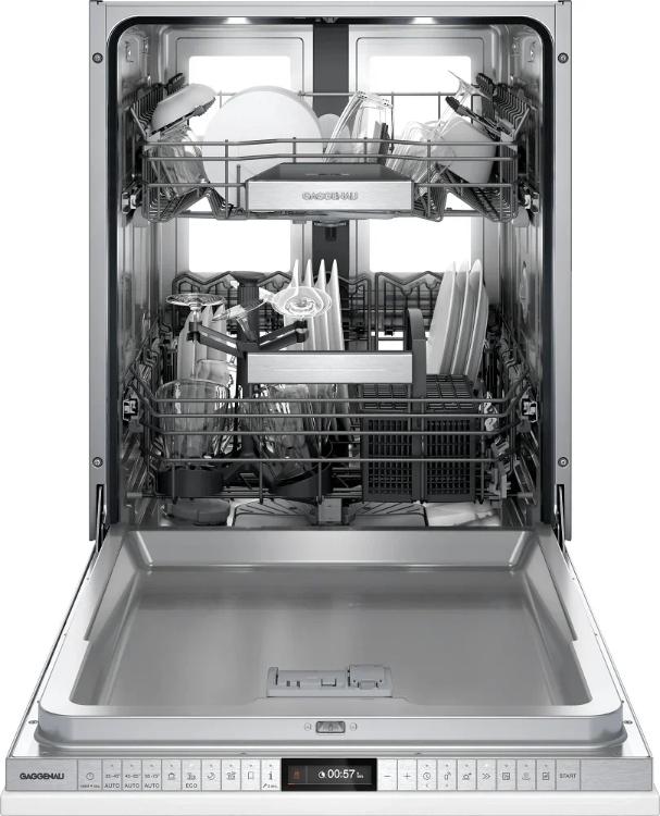 Встраиваемая техника Gaggenau DF481101F — это воплощение немецкой точности, функциональности и современного минимализма. Благодаря полностью интегрированной установке, устройство гармонично сливается с кухонным фасадом, подчеркивая элегантность интерьера. Высота корпуса регулируется в диапазоне от 86,5 до 92,5 см, что позволяет идеально вписать его в нишу практически любого гарнитура. Фронтальная панель скрыта, а управление осуществляется через стильную панель из нержавеющей стали с сенсорным TFT-дисплеем и интуитивно понятным Touch Control. Внутренняя камера из нержавеющей стали дополнена продуманной LED-подсветкой, создающей ощущение премиальности и удобства при загрузке. Система плавного выдвижения корзин и слайдерное крепление фасада обеспечивают долгий срок службы и легкость эксплуатации.