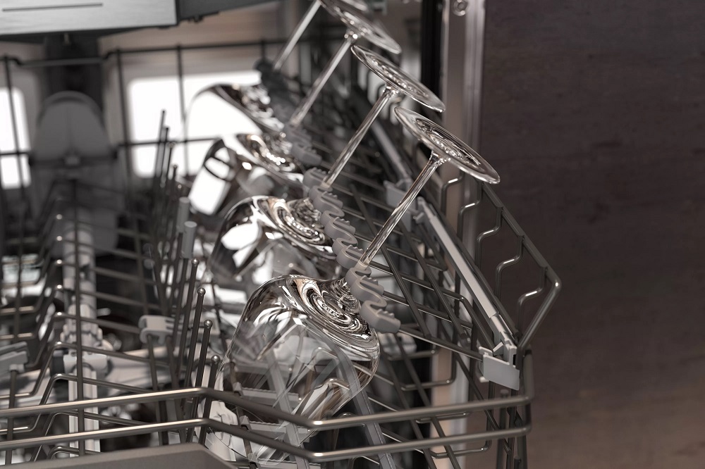 Особое внимание уделено эргономике и вместимости: регулируемая по высоте корзина, система Rackmatic-3, корзина для столовых приборов и дополнительный фиксатор для бокалов позволяют разместить до 12 комплектов посуды, включая 23 бокала, а также крупные тарелки и кастрюли с максимальным диаметром до 34 см в нижней корзине. Направляющие для плавного выдвижения и доводчик с плавным закрытием делают процесс загрузки и выгрузки максимально комфортным. Устройство открывается легким нажатием или постукиванием (Push-to-Open / Knock-to-Open), а по завершении процесса дверца автоматически приоткрывается, что обеспечивает быстрое и бережное высыхание содержимого.