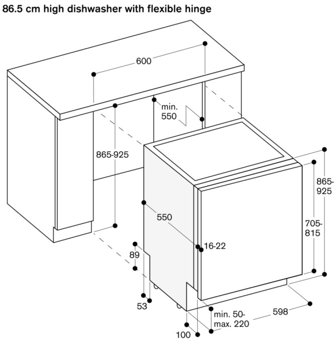 Большая часть полноразмерных и узких посудомоек встраиваемого и отдельностоящего вида имеет высоту около 82-85 см: такие модели легко размещаются под столешницей. Встраиваемые модели несколько ниже, так как у них отсутствует верхняя крышка.