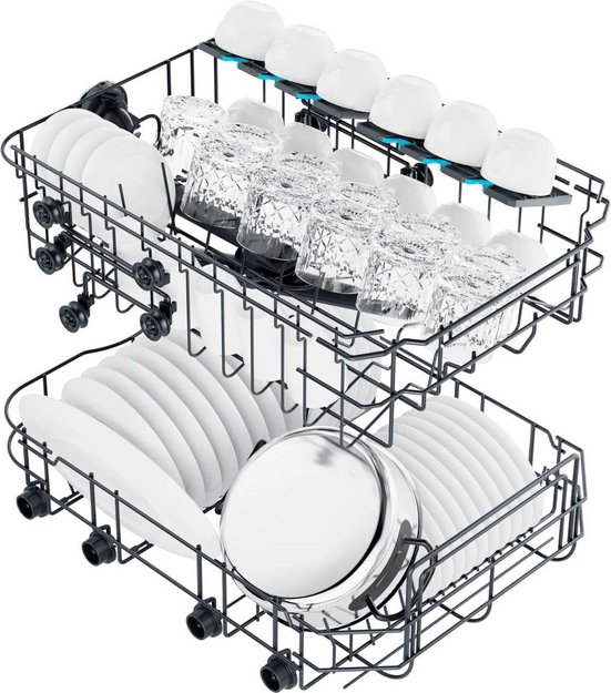 Корзина для столовых приборов достаточно высока, ввиду чего она устанавливается в нижнем коробе, где для нее предусматривается специальное место между разделителями для тарелок. Приборы в корзине могут размещаться как вниз, так и вверх рукоятками — это зависит от количества приборов и требований пользователя. Однако острые предметы — ножи или вилки — необходимо размещать острием вниз для предотвращения травм. Ножи рекомендуется размещать в корзинах с осторожностью, поскольку лезвия из керамики, например, могут затупиться. Чтобы избежать этого, следует использовать фирменные моющие средства и обязательно располагать ножи по отдельности, чтобы они не соприкасались с другими предметами.