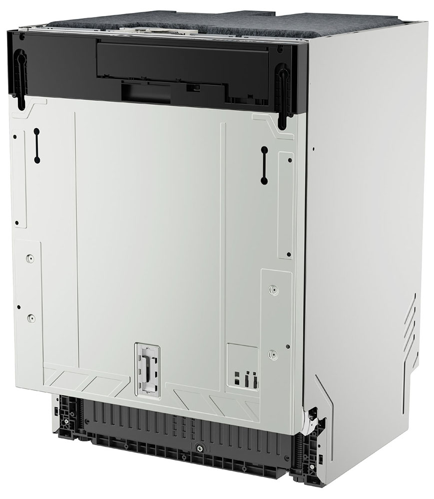 Встраиваемая модель Хайер отлично впишется в любой интерьер, главное — правильно выбрать место, чтобы подвести коммуникации. Устанавливается в нишу целиком, полностью закрывается декоративной панелью. Имеет стандартные размеры, поэтому может не поместиться на очень маленькой кухне. В камеру можно загрузить ограниченное число комплектов: 16 шт. Комплектом считается набор посуды на одного человека, который нужен для полноценного приема пищи: глубокая и плоская тарелки, тарелка для салата, блюдце под чашку, сама чашка, ложка и вилка.