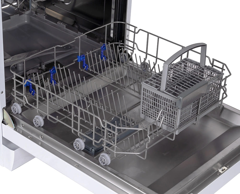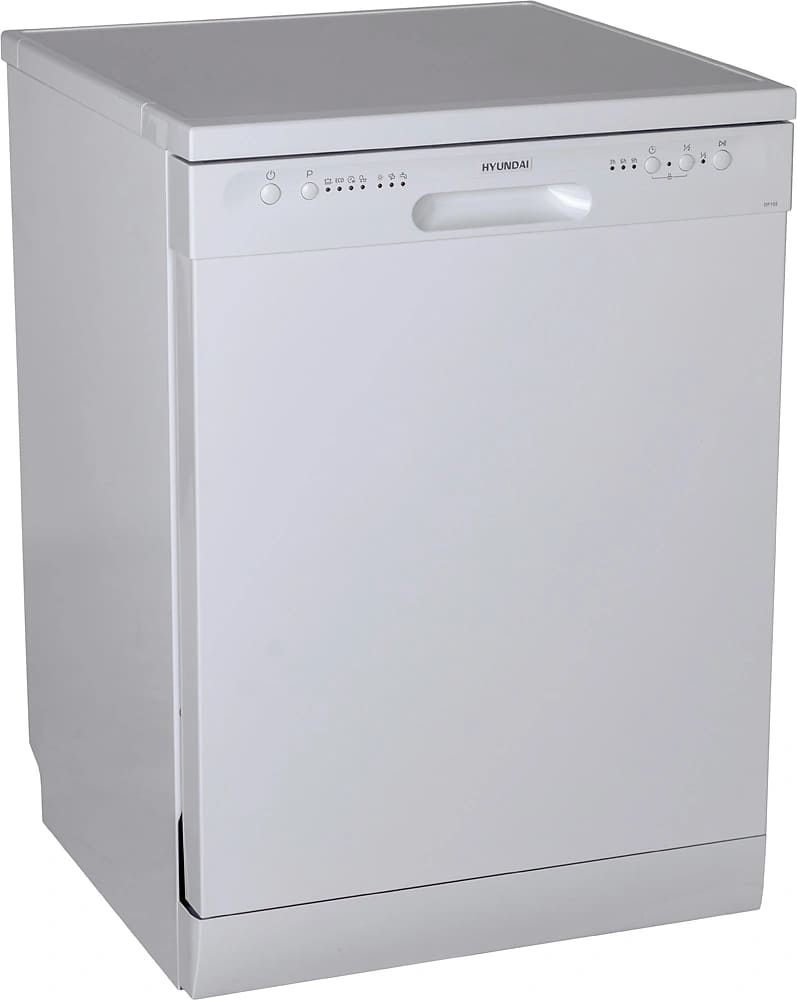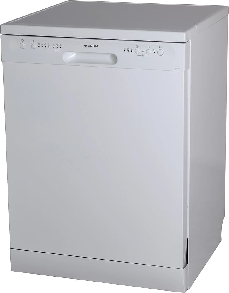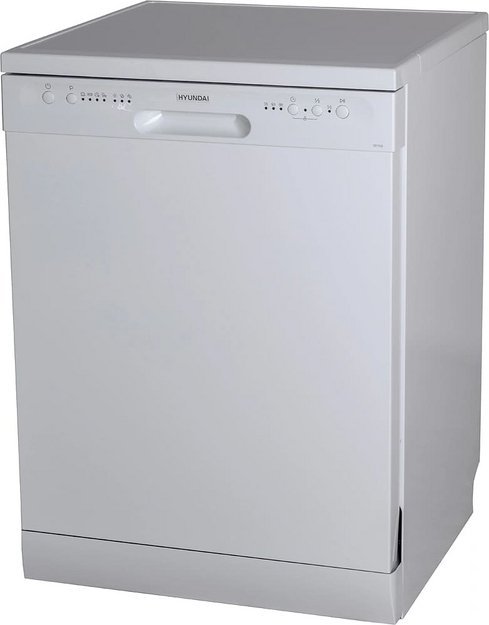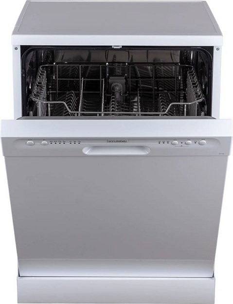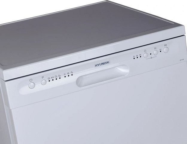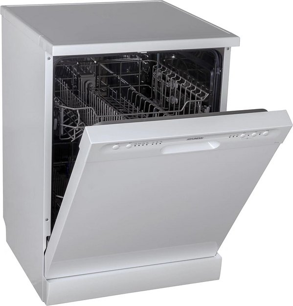 Отдельностоящая модель Хендай отлично впишется в кухонный интерьер, главное — правильно выбрать место, чтобы подвести коммуникации. Имеет стандартные размеры, поэтому может не поместиться на очень маленькой кухне. В камеру можно загрузить ограниченное число комплектов: 12 шт. Комплектом считается набор посуды на одного человека, который нужен для полноценного приема пищи: глубокая и плоская тарелки, тарелка для салата, блюдце под чашку, сама чашка, ложка и вилка.
