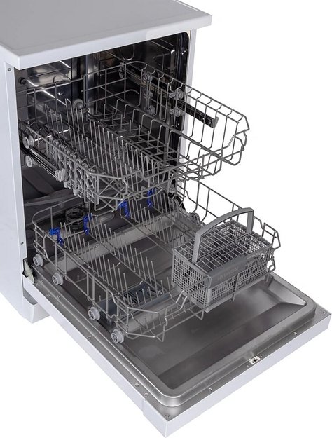 Полноразмерные модели выбирают в больших семьях, а также те, кто много готовит или часто принимает гостей. Их вместимость может составить до 15 комплектов посуды, а габаритные размеры соответствуют размерам стандартной кухонной мебели шириной и глубиной 60 см и высотой 82-85 см. Они выпускаются как во встраиваемом, так и в отдельностоящем варианте: во втором случае для установки понадобится достаточно много места. Как правило, полноразмерные приборы отличаются большим набором стандартных и специальных программ мойки, а также дополнительных опций: в частности, они оснащаются третьей корзиной для мытья столовых приборов.