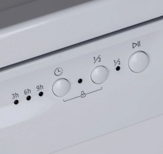 Кроме того, в зависимости от модели на панели управления могут присутствовать кнопки для задания отсрочки старта, для дополнительного полоскания, для запуска быстрой программы, для мойки с использованием комбинированных моющих средств «3 в 1» и для половинной загрузки. В более новых моделях при помощи горячих клавиш «+» и «-» можно регулировать температуру мытья, а также выбирать мойку в одной из корзин при половинной загрузке.