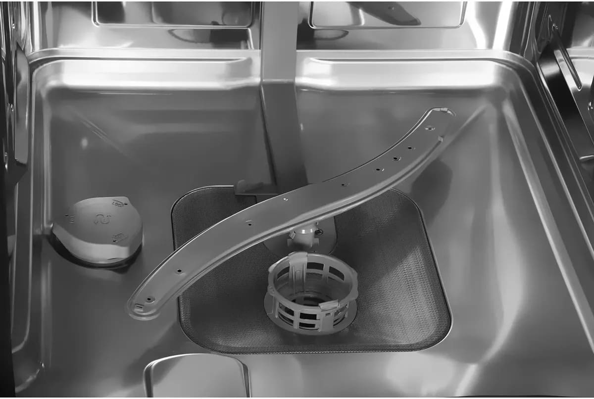 Как известно, принцип работы посудомоечной машины состоит в том, что на посуду в корзинах воздействуют сильные струи воды, которые подаются сквозь специальные форсунки во вращающихся разбрызгивателях-коромыслах. Класс мытья определяется, исходя из количества разбрызгивателей и форсунок, а также их диаметра — чем больше отверстий и чем меньше их диаметр, тем выше класс. Имеет значение также и расположение отверстий, так как струи воды не должны пересекаться — это мешает точности попадания в нужные места, а значит, и эффективности мытья. Кроме того, в камере не должно оставаться «слепых» зон, куда вода попадать не будет.
