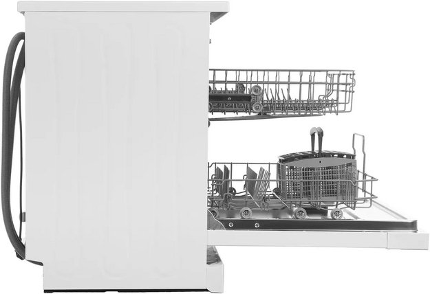 Полноразмерные модели выбирают в больших семьях, а также те, кто много готовит или часто принимает гостей. Их вместимость может составить до 15 комплектов посуды, а габаритные размеры соответствуют размерам стандартной кухонной мебели шириной и глубиной 60 см и высотой 82-85 см. Они выпускаются как во встраиваемом, так и в отдельностоящем варианте: во втором случае для установки понадобится достаточно много места. Как правило, полноразмерные приборы отличаются большим набором стандартных и специальных программ мойки, а также дополнительных опций: в частности, они оснащаются третьей корзиной для мытья столовых приборов.