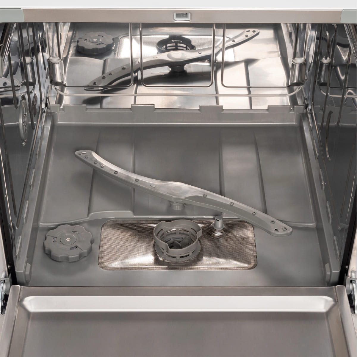 Полноразмерные модели выбирают в больших семьях, а также те, кто много готовит или часто принимает гостей. Их вместимость может составить до 15 комплектов посуды, а габаритные размеры соответствуют размерам стандартной кухонной мебели шириной и глубиной 60 см и высотой 82-85 см. Они выпускаются как во встраиваемом, так и в отдельностоящем варианте: во втором случае для установки понадобится достаточно много места. Как правило, полноразмерные приборы отличаются большим набором стандартных и специальных программ мойки, а также дополнительных опций: в частности, они оснащаются третьей корзиной для мытья столовых приборов.