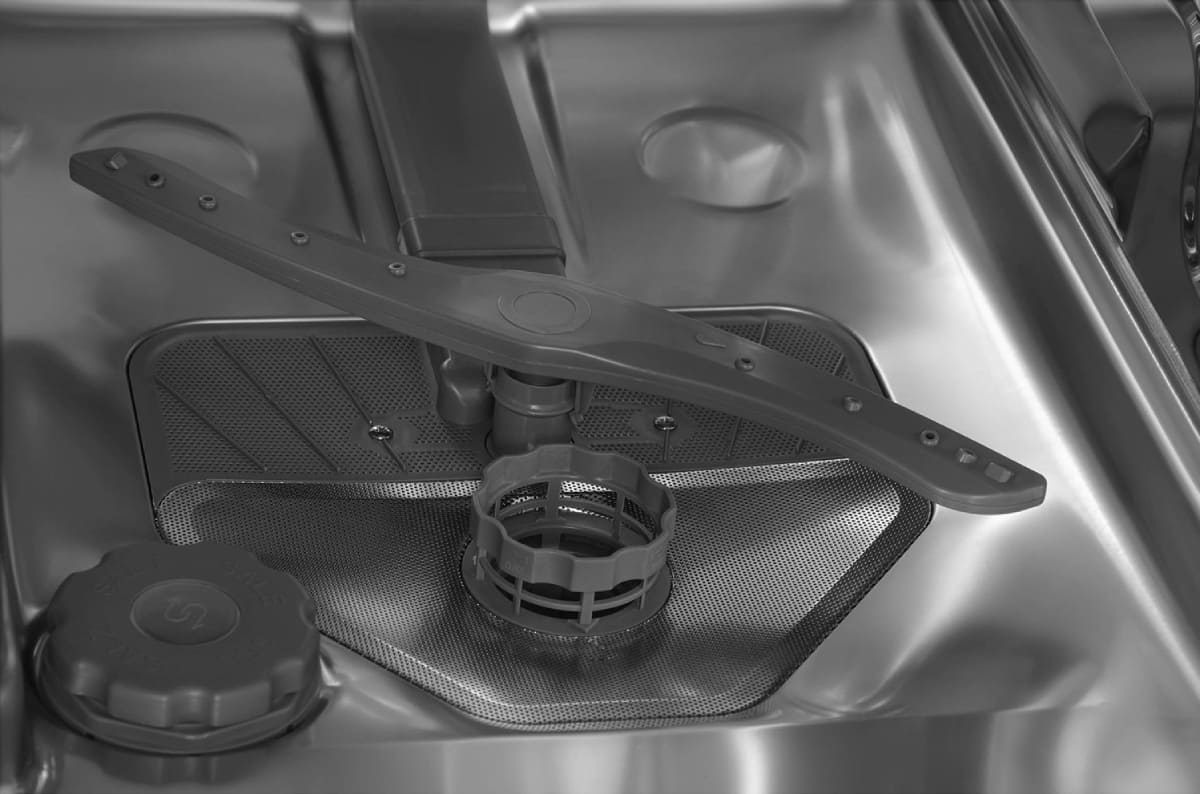 Как известно, принцип работы посудомоечной машины состоит в том, что на посуду в корзинах воздействуют сильные струи воды, которые подаются сквозь специальные форсунки во вращающихся разбрызгивателях-коромыслах. Класс мытья определяется, исходя из количества разбрызгивателей и форсунок, а также их диаметра — чем больше отверстий и чем меньше их диаметр, тем выше класс. Имеет значение также и расположение отверстий, так как струи воды не должны пересекаться — это мешает точности попадания в нужные места, а значит, и эффективности мытья. Кроме того, в камере не должно оставаться «слепых» зон, куда вода попадать не будет.